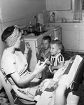 "Next time, she'll listen" Young boys, Dannie Joe Duckett and Lonnie Dykes, are shown with Danny's mother, Mrs. Bobby Joe Duckett. The boys told warned Mrs. Duckett of a fire at a neighboring house. After originally ignoring the boy's cries of "fire" Mrs. Duckett is shown with being "told off" by the boys. Published in the morning edition, April 26, 1950.
