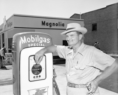 Carl Davis, service station operator for Magnolia Petroleum Company.