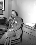 Dr. H. Dale Pearson, chief of staff and chief of the surgical department at the Erie, Pa., Osteopathic Hospital, is in Fort Worth for the convention of Texas osteopaths at Hotel Texas. Dr. Pearson made some claims about propaganda and health care for Americans. Dr Pearson is seated holding a paper.