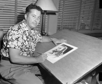 Reverend Clarence Thorpe illustrates with a likeness of Christ his cartooning which he uses in his sermons throughout the nation.