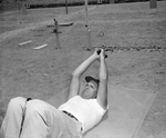 Special Agent Leo Robertson of Dallas shows some trick shooting at FBI exercises at Wolters Air Force Base.