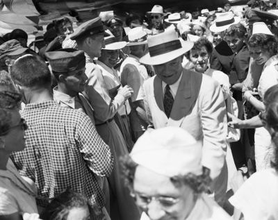 General Eisenhower walking amongst a crowd at Perrin AF Base.