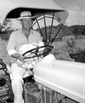 Included in the good equipment on the Harbin farm, which was bought in January 1950, is the new tractor on which the young farmer sits in this photo.