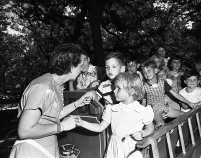 Fort Worth City of Forest Park Zoo. Danny Masters, Kay Palmer, and Mrs. Bess Frazier.