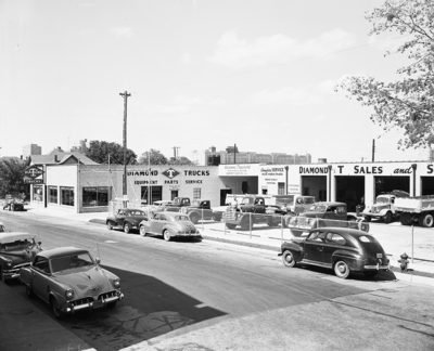 Exterior shot of new office, sales, parts and service plant of Diamond T Sales Co.