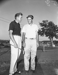 Bill Flowers of Fort Worth, left, talks with Medalist Ray Ferguson of home club after qualifying in Breckenridge golf tournament Friday. Ferguson had 69, Flowers 70.