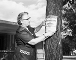 Mrs. Joe Dee Calloway, shown tacking up poll marker for voting precinct 71.