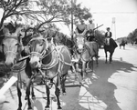 Series on the Albany Fandangle. Weaver brush, Glenn Taylor, and Mrs. Arthur Dinsmoor on old Butterfield State Line coach.