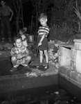 David Moore pointing to spot where he rescued his little brother Sammy Moore from drowning in a three-foot fish pond.