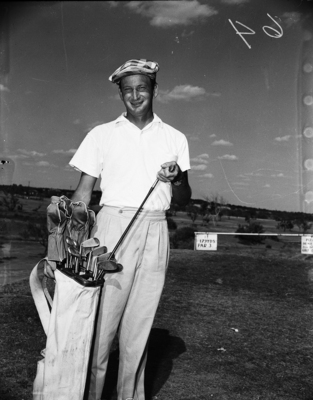 Walter Dixon, holding golf club. Unfortunately Dixon loss to Lee Pinkston, of Abilene in first round of the Brownwood Invitational golf tournament.