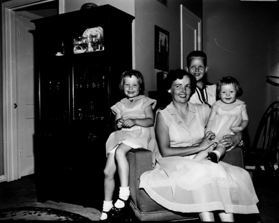 Summer Visitors -- Visitors here from Lexington, Va., are Mrs. Jan W. Owen, and her children Peggy, left; Pat, back, and Susan. Clipping reads: "A cordial welcome in Fort Worth is extended to visitors--and in summer, many of the guests include former residents and their children, back home for family reunions." Published in the Fort Worth Star-Telegram, July 5, 1953.