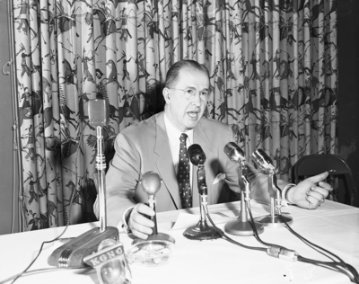 Secretary of Agriculture Benson visits Texas. Secretary Benson addresses press conference in Lubbock.