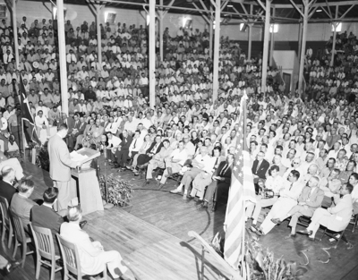 Secretary of Agriculture Benson visits Texas. Ben addresses The American Cotton Congress in Texas Tech Gym.