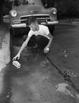 Freddy Correa, playing in water at his grandmother's home, Mrs. F. M. Poffenbach.