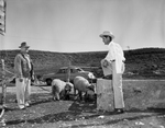 D. F. Eaton, left, a dairy farmer and former Wise County agricultural agent, shows a lamb and ewe to County Agent Ralph Tapp.