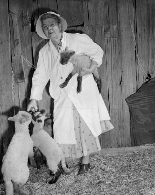 Mrs. Eaton feeds some orphan lambs with a bottle. Around 60 ewe are running on the Eaton farm.