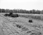 Silage can be put up in bales if farmers do not have field cutters. This silage was cut with a mower, wind-rowed with a swatter and then baled with a slicer baler. Bales are about half the size of dry bale, weigh about 90 pounds. The picture was taken at the Noble Foundation Farm at Ardmore, Oklahoma.