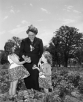 A good garden helps Mrs. J. W. Ehrke, from Brown County, use her freezer to good advantage. Her two granddaughters, Virginia, 3, left, and Lynn Joy Heard, 6, right, of Crane pitched in to help grandmother dig some potatoes. The children are daughters of Dr. and Mrs. W. M. Heard of Crane.