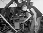 Harvey Carlin of Kennedale 4-H Club shuts off his motor before checking a combine adjustment. This is important since no repairs or adjustments should be made while equipment is running to avoid accidents from happening.