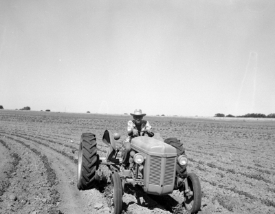 Lawrence Outlaw, 15, plows his dad's peanuts. His son plays a big part in his dad's dairying and farming operations.