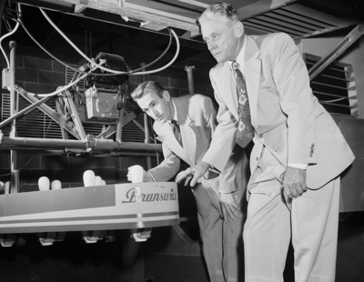 Bowling. C. C. Bearden Jr., and M. L. Richards, owners of B&R Bowlanes shown inspecting new equipment.