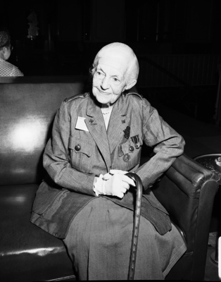 The national convention of the Women's Overseas Service League at Hotel Texas was attended by Mrs. Minnie Souders Darst, 89, who flew here from Berkley, California.