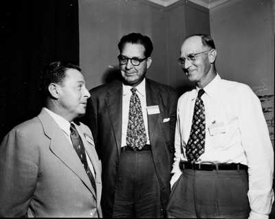 Among 200 civil defense specialist present at the two-day seminar sponsored by the Federal Civil Defense Administration which opened at Hotel Texas were, left to right, F. A. Randall, safety director, Carbide and Carbon Company of Texas City; A. T. Deer, general superintendent of protection, and W. F. Booher, assistant chief of police of Wichita Falls.
