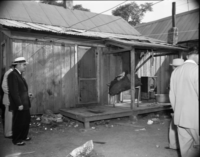 Members of the new Housing and Sanitation Board saw many ugly sights similar to the above on a tour of underserved Fort Worth areas Wednesday. Shown at left is City councilman Tom McCann, a leading worker here for slum clearance.