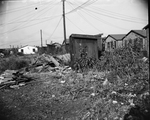 Members of the city's housing and sanitation board took a trip to two substandard areas to study the needs at close range. Photo shows a line of outdoor pit toilets being used in Samuels Avenue area surrounded with trash and piles of lumber.