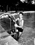 Jack Massey, 17-year-old Amon Carter Riverside senior, climbs out of Marine Park Pool after winning the men's 100-yard freestyle in the city swimming meet Saturday night.