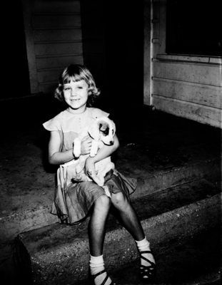 Ginger Lucas, 7, holds her new puppy, Ladybug, who replaces Cuddles killed Monday. Mrs. C. E. Wilson, 5717 Helms, gave Ladybug to Ginger after she read a Star-Telegram story about Cuddles' death. Ginger is the granddaughter of Mrs. B. L. Lucas, 2809 Northwest Twenty-eighth.