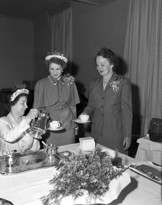 Mrs. H. Dale Pearson of Erie, Pa., left, wife of the president of the American Osteopathic Association, poured coffee for Mrs. L. C. Edwards of San Antonio, center, president of the state auxiliary, and Mrs. E. Morgan of Dallas.
