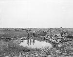 Loyd Herring, right, recently discovered a spring at this place on his ranch, dug it out and now has a five-foot-deep permanent water hole for his stock. The two men standing at left are unidentified.