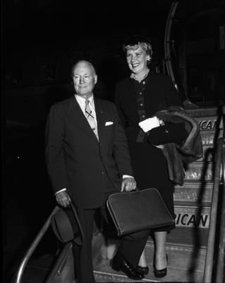 Navy Vice Admiral Charles E. Rosendahl, retired, and Mrs. Rosendahl arrived at Carter Field Friday night from New York. They will visit relatives here and then continue on to the West Coast Sunday. Rosendahl is one of the world's outstanding authorities on lighter-than-air craft. Charles Emery Rosendahl was a highly decorated Vice Admiral in the United States Navy, and an advocate of lighter-than-air flight. He is executive director of the National Air Transport Coordinating Committee.