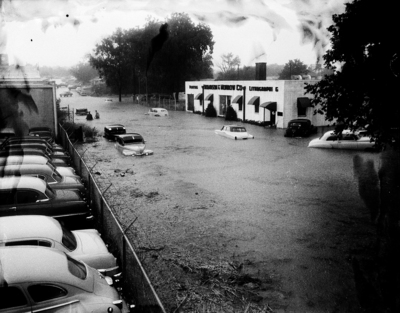A cloudburst turned Bledsoe Street into a river with a strong current Friday afternoon. Drivers had to wade away from their stalled automobiles. Norwood intersects Bledsoe.