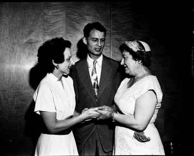 For the first time since 1942 the Texas Music Teachers Association will hold its annual convention in Fort Worth, July 16-18. Attendance will be principally from 18 organized local association. The featured musical event is a piano recital by Miriam Wagner, left, of San Antonio, who studied at Chicago Musical College and American Conservatory in Chicago. Greeting Ms. Wagner is Virgina France, Dallas, vice president of Music Teachers National Association (MTNA) while Dean E. W. Doty of the University of Texas College of Fine Arts looks on. Dean Doty will discuss the theme of the convention "More professionalism in the music profession."