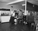 Among hundreds of customers and visitors visiting the formal opening of Tax and Chuck's Appliances, 1704 E. Vickery, were Mrs. Roy Clark, left, of 3404 Reed, and her children. Demonstrating television sets for them are F. E. (Tex) Brannon and his wife, Mrs. Elsie Brannon.