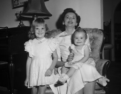 Mrs. Don G. Elstrand and daughters, Linda Dianne, left, and Sharron Lynn, of Washington, are visiting here with her mother, Mrs. Marjorie McMahon, 2301 Warner Road.