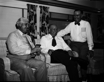 Harry C. Murphy, center, president of Burlington Lines, discussed his tour of the company's system with S. L. Fee, left, Burlington's vice president for operation, and R. Wright Armstrong, right, vice president of the Fort Worth and Denver Railway Company, during a stop in Fort Worth Tuesday, July 21.