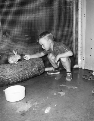 Larry Brooks, 4, believes that the best way to a rabbit's heart is through his stomach. And Peter Cottontail from the Fort Worth Children's Zoo finds that he can't resist the hand that feeds him.