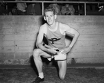 Pictured here is Larry Anderson from Parrots, took part in mile relay, posing for a photograph. Published in the Fort Worth Star-Telegram morning edition, April 30, 1950.