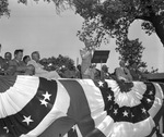 Chicago Pneumatic Tool Company groundbreaking for Fort Worth plant; Amon G. Carter is seen speaking at the microphone on the outdoor podium.