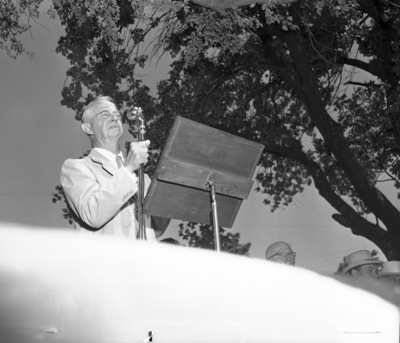 Chicago Pneumatic Tool Company groundbreaking for Fort Worth plant; speaker at outdoor podium