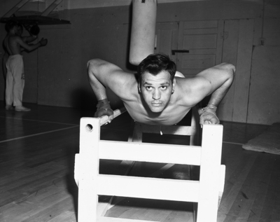 Heavyweight Adolph Torres goes through a strenuous push-up schedule to get ready for Texas Amateur Athletic Federation boxing tournament which started Thursday night.
