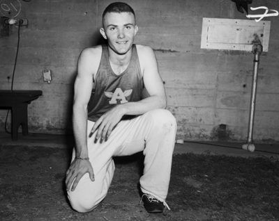 Pictured here is Ronald Clinkscale from Jackets, took part in sprint relay, posing for a photograph. Published in the Fort Worth Star-Telegram morning edition, April 30, 1950.