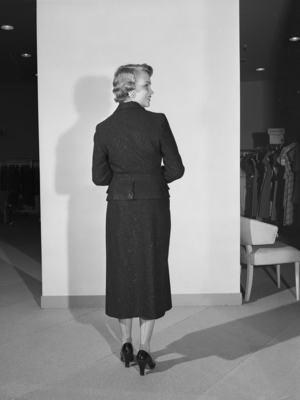 Miss Patsy Luther models long skirt displaying the difference five inches can make.