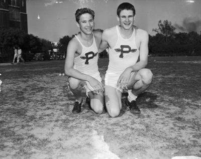Pictured here is W. A. Payne from Panthers, took part in broad jump, posing for a photograph. Published in the Fort Worth Star-Telegram morning edition, April 30, 1950.