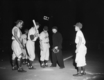 Pitcher Howard Judson of the Oilers, bat in hand, argues with Umpire Bud Newman over a decision that retired him on strikes in the second inning of Saturdays nights' Tulsa-Cat game at La Grave. Manager Joe Schultz of the Oilers is the interested bystander. The Oilers won the game, 6-4.