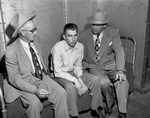 Elusive Lawrence Edward Byrom, center, is flanked by Deputy Sheriff J. V. Green, left, and Sheriff Sully Montgomery shortly after the youth's surrender to the two officers early Saturday. Wanted in four North Texas counties for a series of crimes, Byrom was the object of manhunt involving more than 50 officers from the counties.