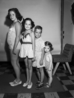 Seven children recently brought another neighborhood together for a show for the Star-Telegram Milk and Ice Fund. Participants in the bathing beauty and talent show were Diana Yankee, Sharon Adams, Scott Yankee and Barbara Dell Simmons, shown left to right, and Kitty Lee Simmons and Camille and Michele Frye, not pictured. The youngsters earned $12.